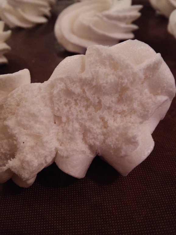 очень много мелких пузырьков и плохо застывал. ОБычно на сл.день зефир уже застывший был, а тут трогаю и он на пальце остается..не застывает.
