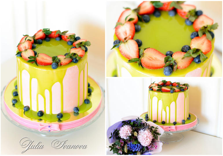 Украшение тортов кремом,шоколадом, фруктамиУра! Представилась возможность порадовать заказчиков безмастичным тортиком! Оформление кремом на основе клубничного шоколада, зеркальная лимонная глазурь и свежие ягоды! Под катом мнооого красивущих фото))