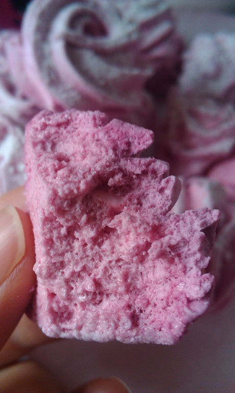 Замечательные фото! И цвет потрясающий:) Только по-моему дырочек из-за воздуха многовато, хотя могу ошибаться. Если будет желание можно посмотреть в посте по-моему где я яблоко-лайм фотографировала есть фото разрезика, щас по техническим причинам не могу фото вставить для сравнения:) Сахара нельзя делать меньше 330-350 грамм( общее кол-во), иначе зефир потеряет форму и будет слишком маленький. Желаю удачи в освоении новых вкусов! Будут вопросы-велкам:)