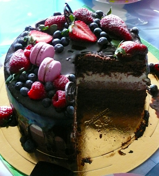 Украшение тортов кремом,шоколадом, фруктамиДля маленькой принцессы Алисы на 4-х летие! Три шоколада. Ренатик, спасибо за разрезики!!!