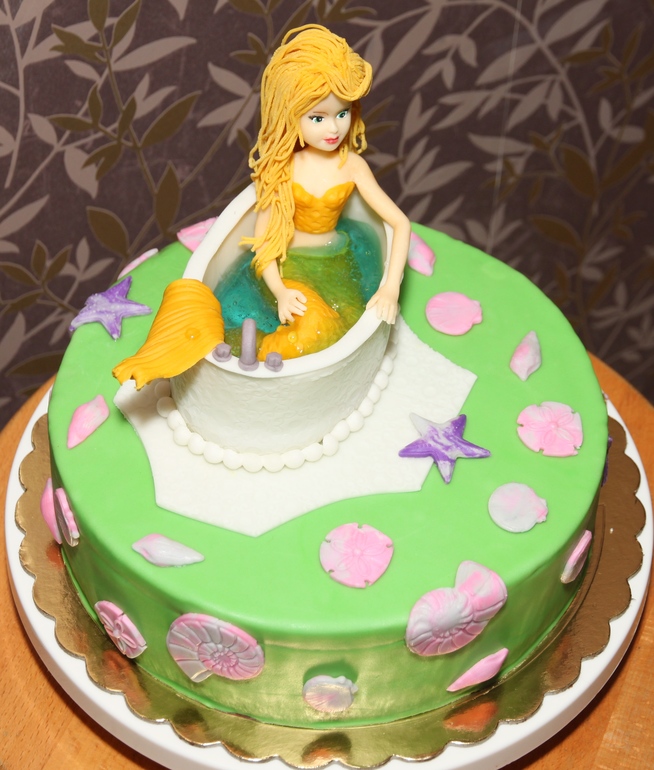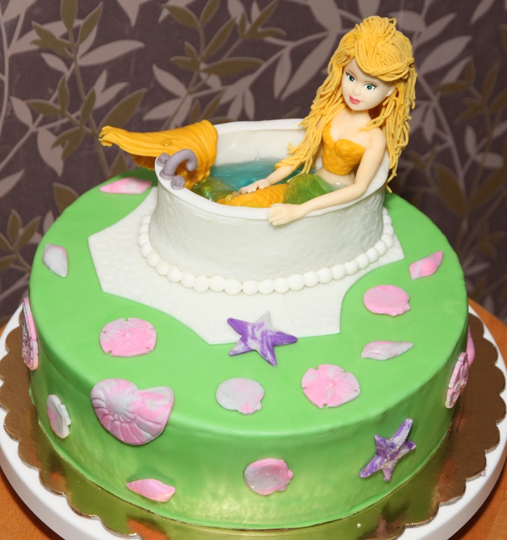 Торты детскиеНа день рождения доченьке слепилась такая русалочка. Идея не моя, но доча попросила сделать похожий тортик. Вода из декоргеля. Ну и в конце поста общее фото с домашними кейк попсами, мармеладом и зефиром