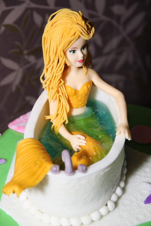 На день рождения доченьке слепилась такая русалочка. Идея не моя, но доча попросила сделать похожий тортик. Вода из декоргеля. Ну и в конце поста общее фото с домашними кейк попсами, мармеладом и зефиром