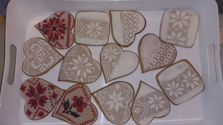 Там на первом фото есть пряник когда смесь королевской глазури просто разбавила водой как написано было в рецепте, типа там сухой белок уже есть... Потом поняла что совсем не то и затем эту смесь с белком смешивала...