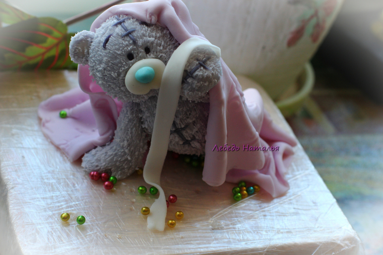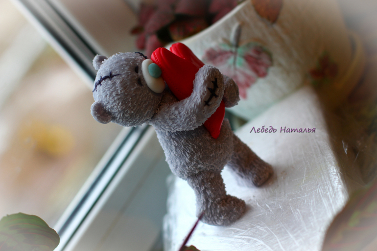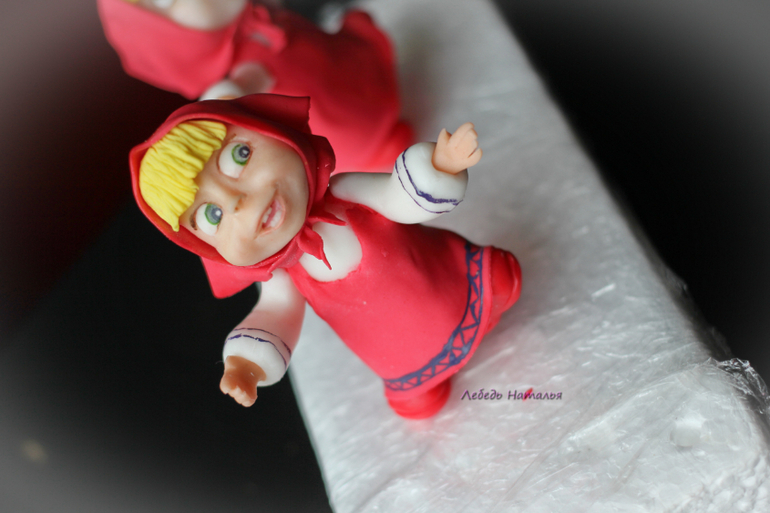 на теддиков ....прям бум какой-то.....раньше все фиксиков просили.....а Маша ...очень капризная в лепке.....там на заднем плане еще одна стоит....не получилась и фоткать ее не стала....да и эта просто на девочку похожа ...