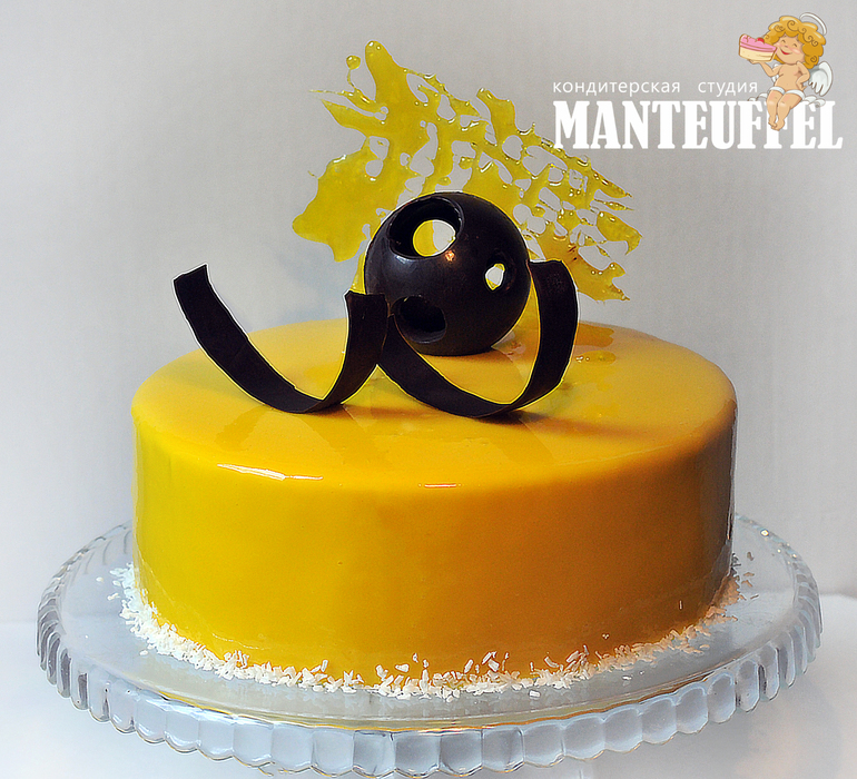 Торт с зеркальной глазурю и шоколадным декором, под катом разрезик