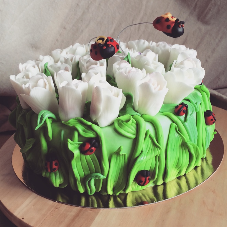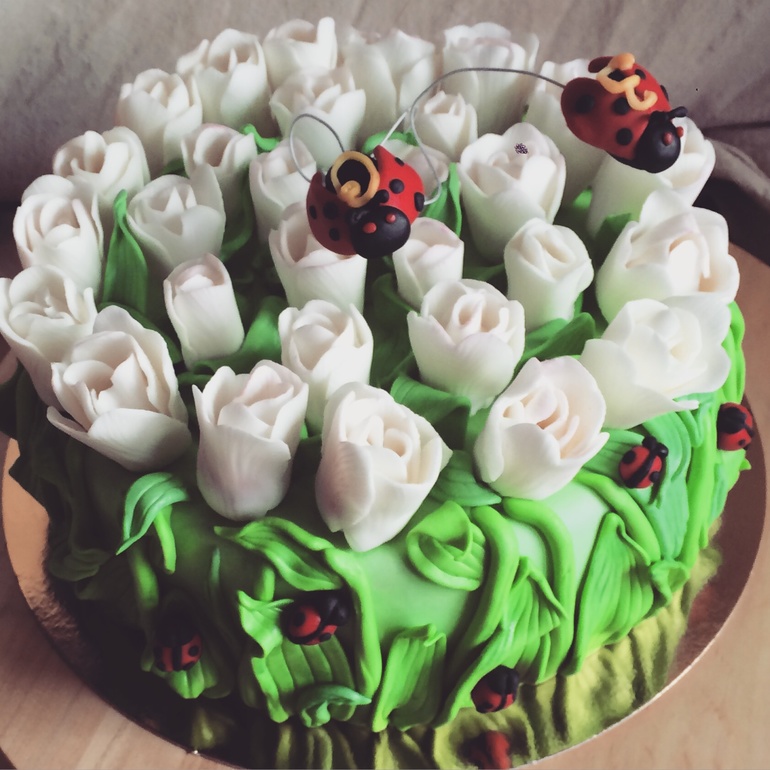 Торты для женщинЗнаю , что какой то известный дизайн но не знаю чей ;) заказчик прислал фото. Тюльпаны без проволки