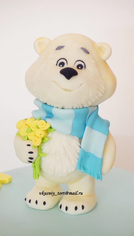 Спасибо) Все просто - надо рассчитать длину шпажек, которое идут из ног фигурки, они должны идти через весь торт и упираться в подложку. И Мишка не такой тяжелый, как кажется на первый взгляд (он не целиком из мастики).
