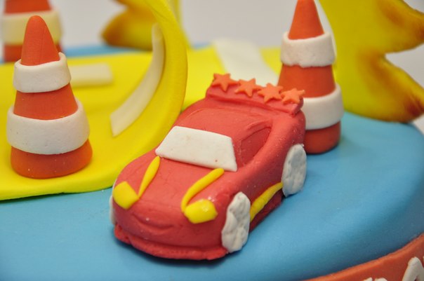 Тортик хорошенький, но мне не нравится как проработана машинка, грубовато смотрится, ещё судя по огню у вас есть аэрограф и в таком случае можно было оживить и надпись или даже сухими красками