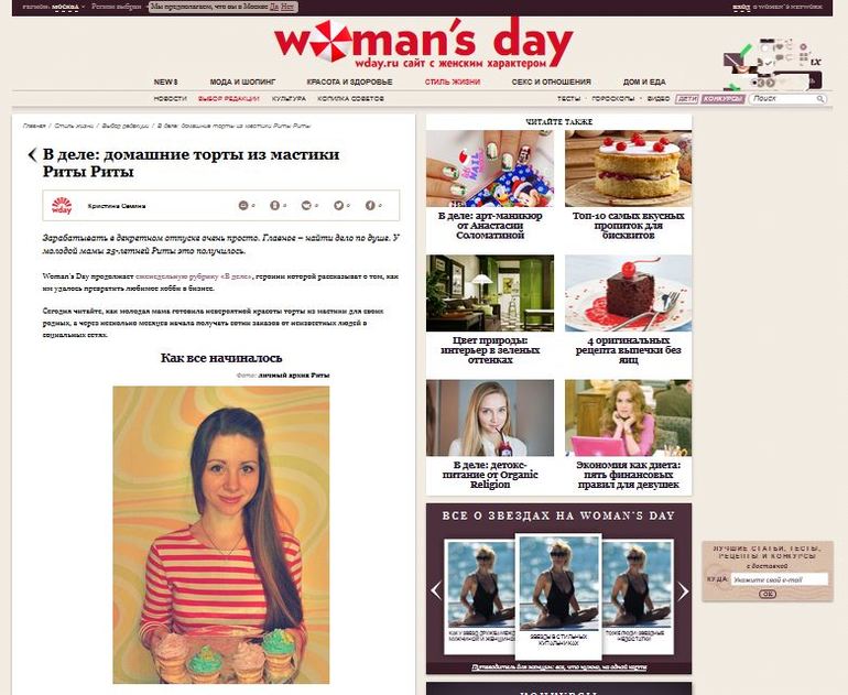 Торты для домашних и друзейЕсли кому интересно, вот ссылка http://www.wday.ru/stil-zhizny/vibor-redakcii/v-dele-krvsivyie-domashnie-tortyi-rityi-sudarenkovoy/