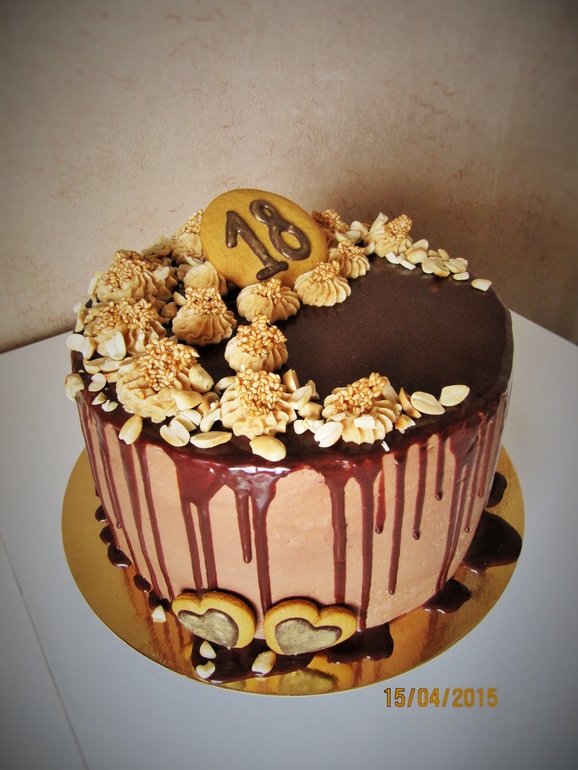 Украшение тортов кремом,шоколадом, фруктамиТортик для девочки на 18 лет которая любит все шоколадное и ореховое, думаю в этом торте все ее гастрономические пристрастия как нельзя лучше сливаются во едино, шоколад, орехи, карамель, что еще для счастья нужно в 18 то лет)))