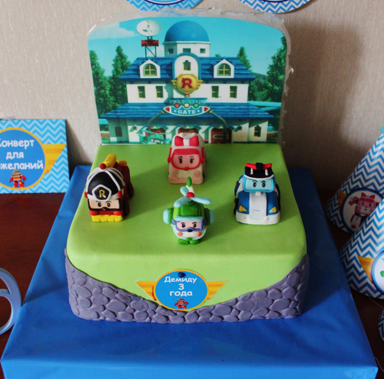 Я давно запланировала сделать на Демидкино Д.Р штаб-квартиру робокаров.... тем более,что в подарок была она самая))))))..... но дочка решили отметить в два захода....и основное празднование перенесли на субботу...а у меня на этот день другие планы...и торт сделать не смогу((((.....поразмысли в последний момент....за сутки так сказать.....я передумала делать эту махину....и как оказалось, что правильно сделала....иначе бы не успела (.....хорошо , то девочки мне помогли....а Ленок оперативненько все напечатала)))))......изначально хотелось все в бело-голубых тонах....т.к штаб квартира бело-голубая.....но забыла я склерозница про атрибуты....и сделала торт зелененьким........только когда стала фоткать поняла, что накосячила(
