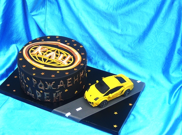 вот даже не знаю - проклянут ли меня за то, что осмелилась не поставить Ламборджини на торт и оттеснила её (его преелесть) в бок и вниз с первого плана, а то ж все это надо было сверху поместить.