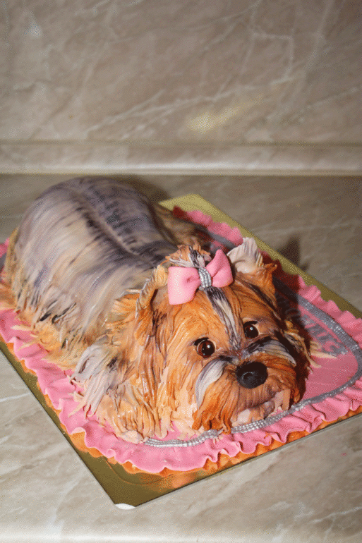 и снова йорик...не очень люблю делать 3D собачек, но как ни странно народ очень любит их есть...(шоколад на кипятке, карамельный крем, сливки , вишня)