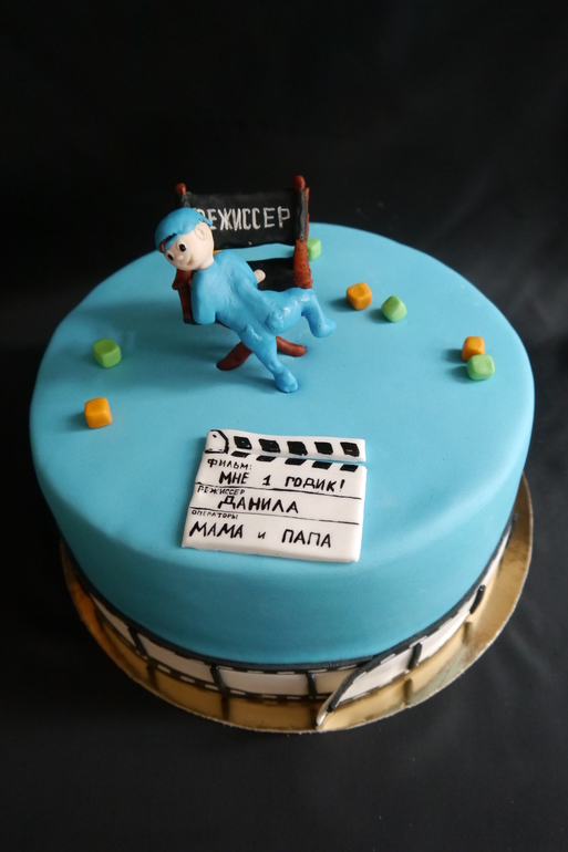 Торты детскиеСрочный тортик на годовасие сына в кино-семье (мама и папа операторы худ. фильмов) Оформление было полностью на мой откуп, так и появилась идея показать главного режиссера их сегодняшней жизни)))