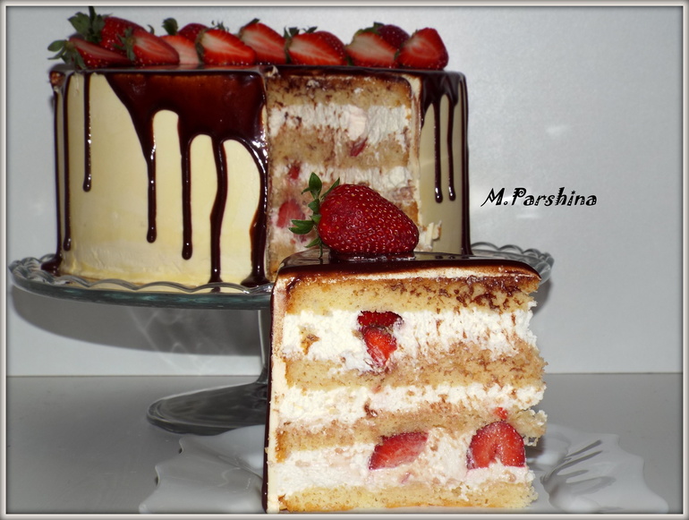 Начинка :ванильный бисквит+сливочно-сметанный крем+клубника.Вес 2,6 кг.
