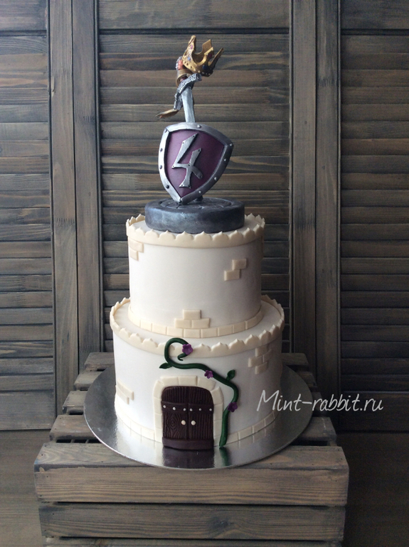 Торты детскиеНа День рождения двойняшек. Праздник был в стиле времен короля Артура. Щит, меч, все дела лепила по эскизу заказчицы :)