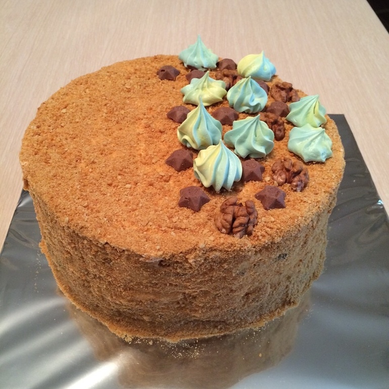 Украшение тортов кремом,шоколадом, фруктамиМедовик со сметанным кремом, грецким орехом и черносливом.Очень мне нравиться, почему я его раньше не любила?????