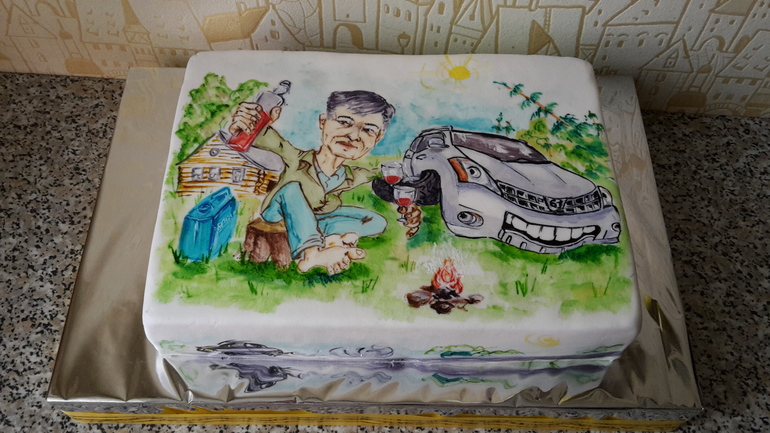 Ничего особого,рисунок-эскиз не мой,я перенесла на торт и дорисовала лицо,надеюсь что именинник себя узнал)