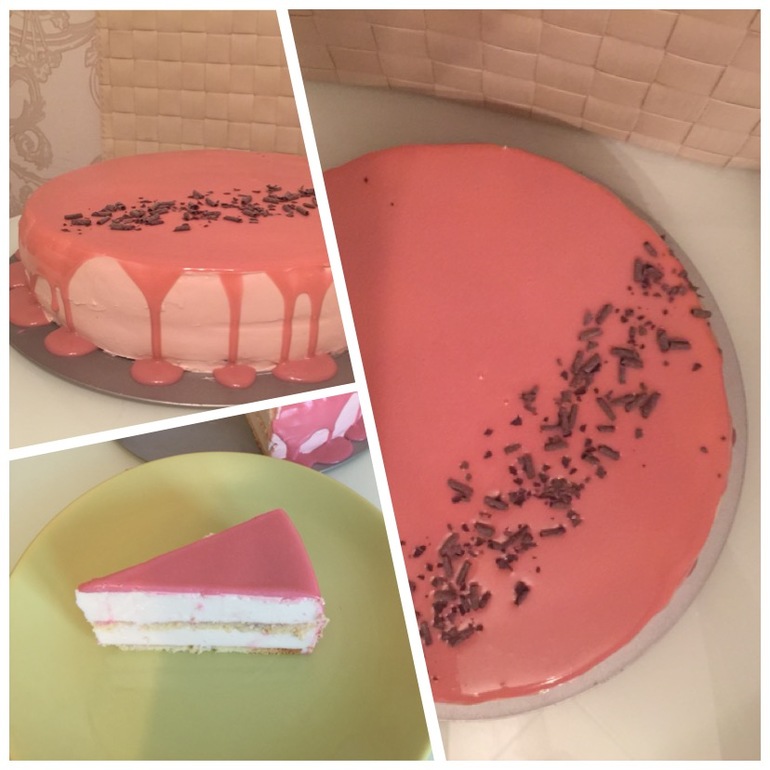 Это ганаш на белом шоколаде, подкрашен розовым.