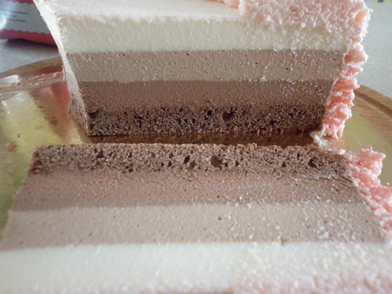 Здравствуйте, а крем с мусса не уползает? И по какому рецепту делали три шоколада? =) Спасибо заранее