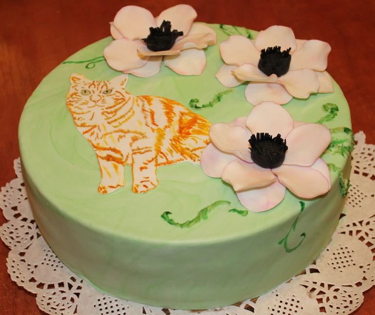 Свадебный выравнивала кремом, с аппликацией кота - ганашем.