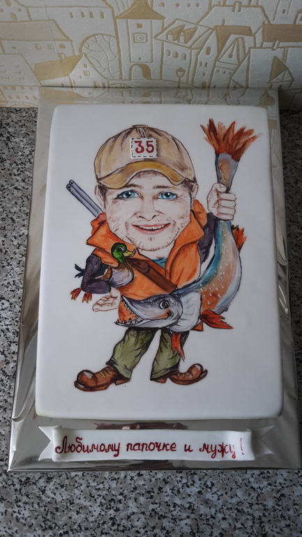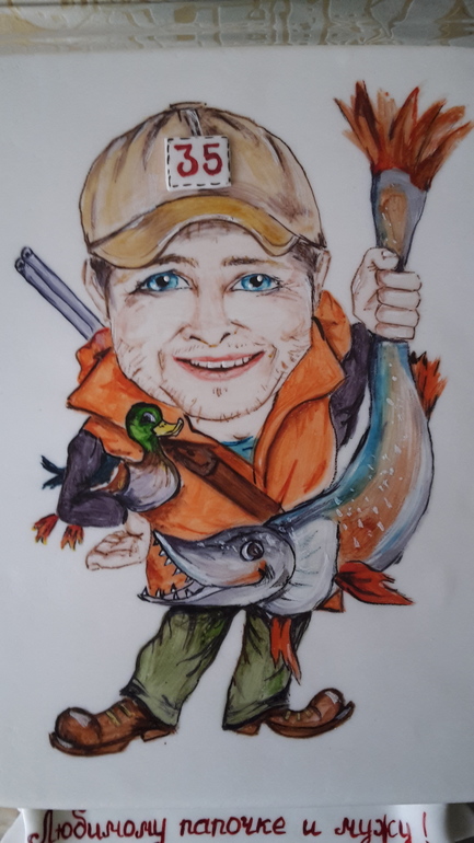 В этот раз торт к "правильной" дате)))В этот раз шарж на тему рыбак-охотник.