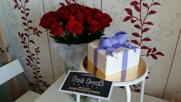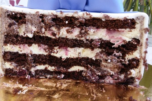 Внутри шоколадный шифон + крем с маскаропне и вишней.