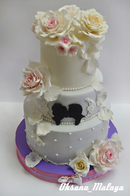Торты свадебныеНу, может конечно "РОЗЫ" это громко сказано в этом торте))) пытаюсь их вот осилить самостоятельно, курсы мне явно не светят, а то как-то совсем накладно получается в связи с нашими ценами на торты( я и так в нашем районе самая дорогая))) тут кстати не давно поднималась тема, на счет цен на торты(это для меня больная тема, т.к. из-за этого у нас много сор с моим мужем, ну не видит он прибыли моей) Да я и сама то не вижу, но больно уж мне нравиться все это))) Ну куда уж деваться и бросать не хочется и поднимать цены нет смысла) и так заказы 1 раз в месяц) ну да ладно, высказалась не много. А теперь вот по поводу торта. Мне так приятно было когда заказали именно мне торт, т.к. могли выбрать мастерицу по-ближе и подешевле, я им так и сказала, но невеста сказала, что хочет заказать только у меня))) Переживаю теперь вот в двойне) нормально ли довезли, как он там храниться будет, в каких условиях и т.д. торт то забрали, но свадьба завтра)