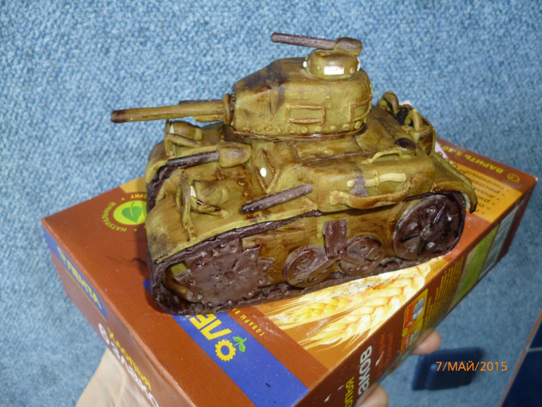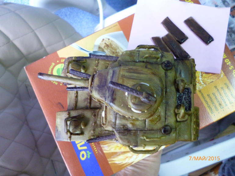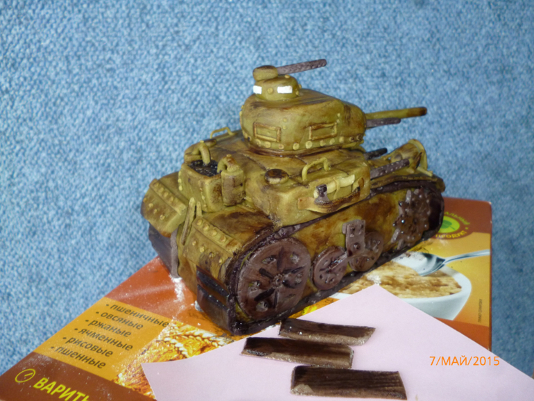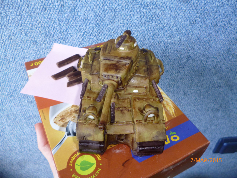 Танк танку рознь. Мне сказали модель, просили её сделать. Танк не новый, а боевой, поэтому априори чистым быть не может, раскрашен специально так, с падпалинами и следами от земли. Лепила второй раз всего из мастики, инструментов нет, поэтому как есть.