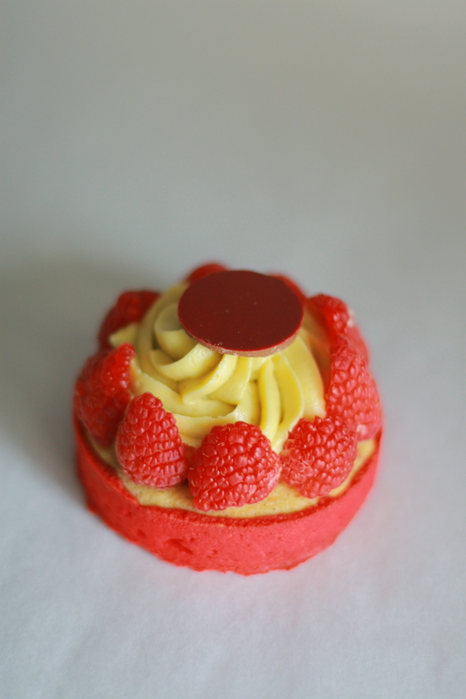 1. Фисташка-малина - фисташковый запеченый крем, малиновое конфи и фисташковый крем-муслин.