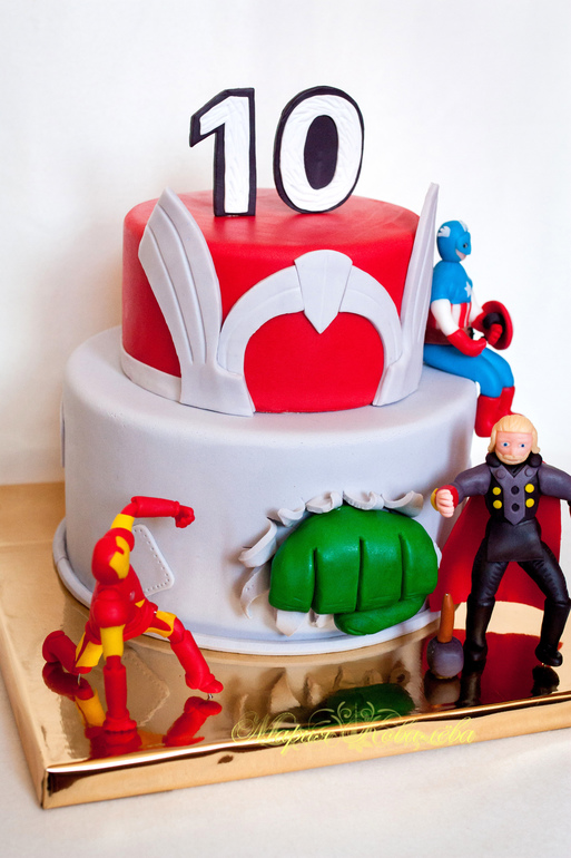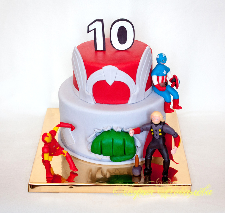 Торты детскиеЖелезный человек, Тор, капитан Америка - главные герои которые должны были быть на торте)