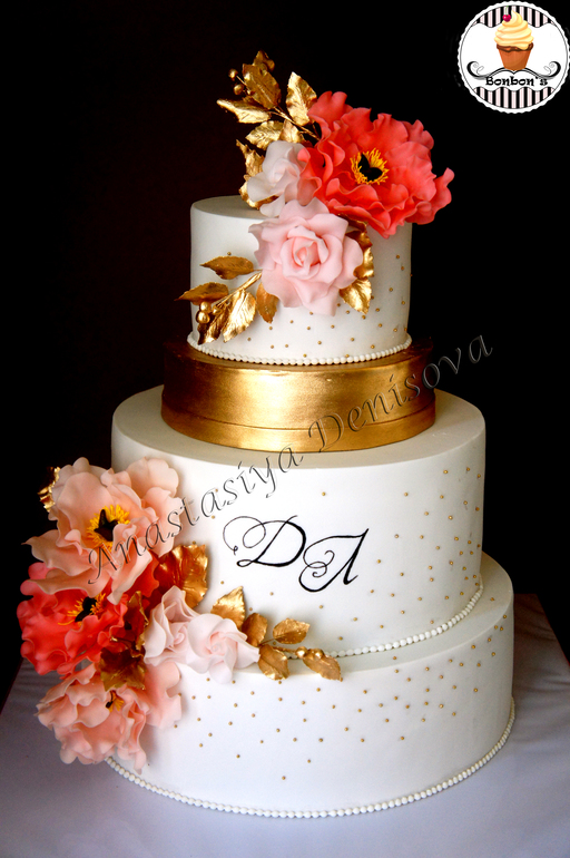 не достаточно они хороши( курсы по мне плачут...ну и я по ним плачу)Честно предупредила заказчицу о том, что цветы не мой конек)))(она все равно согласилась,приятно,конечно) НО выставляя этот торт) мне хочется сказать ОГРОМНОЕ СПАСИБО Надик(модератору) и Королевой Оле за наводку на золотую краску)))) Спасибо вам