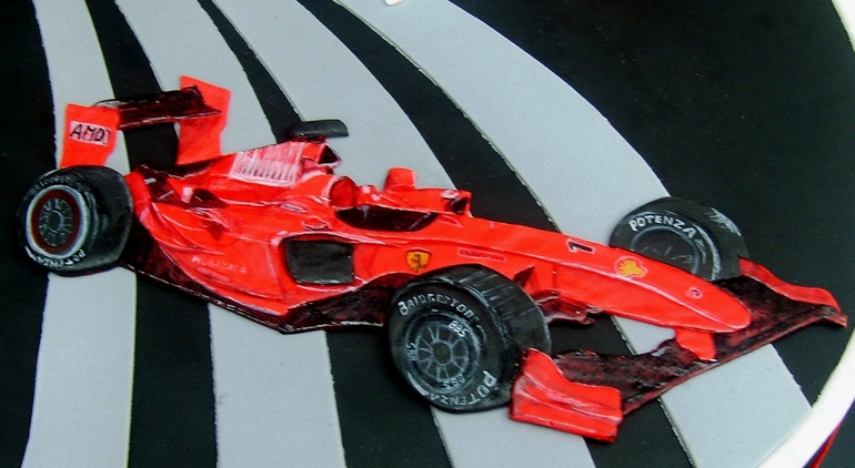 по правой стороне под логотипом "Формулы-1" добавила ещё и флаги в черно-белые квадраты, заготовленный на всякий случай. Фотографии с конечным вариантом нет - предложила заказчице в таком виде и с флагами.. Она решила, что с ними. Приклеила - отдала.