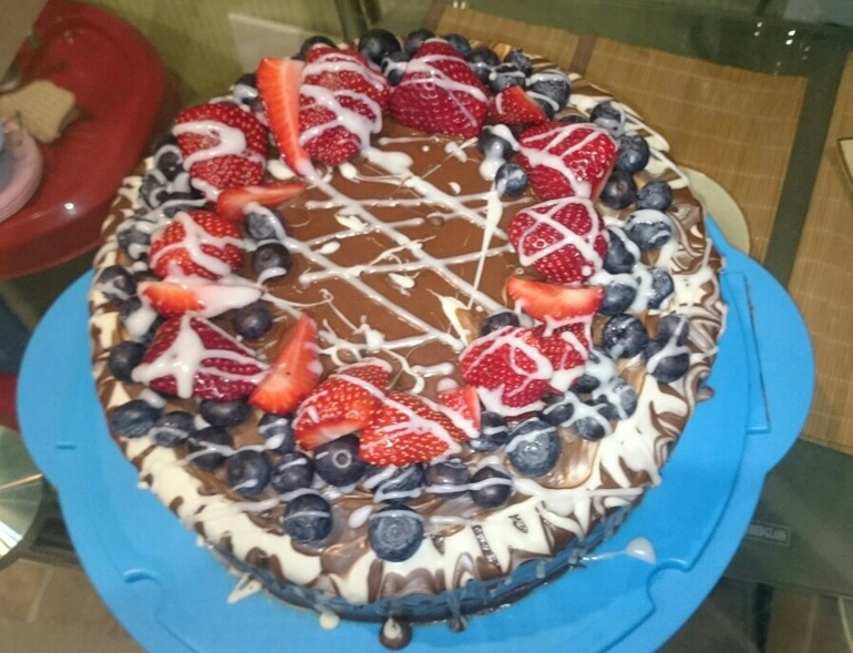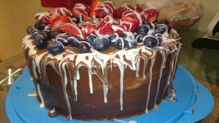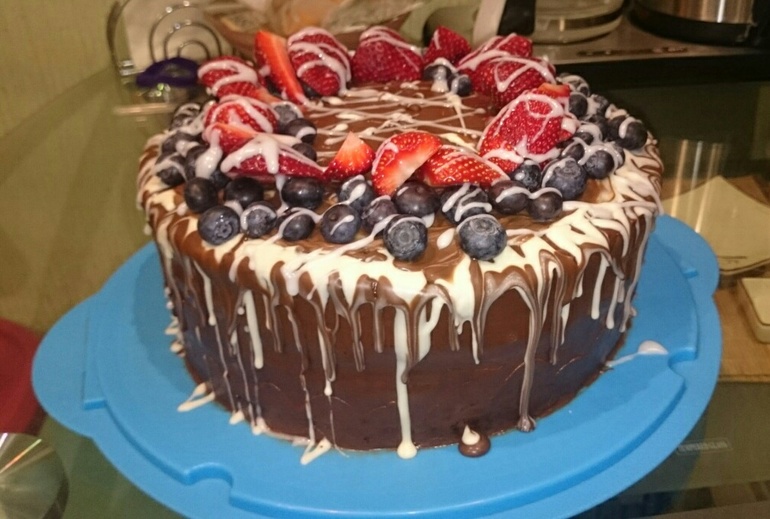 Украшение тортов кремом,шоколадом, фруктамиВот такой очень быстрый тортик у меня получился. За два с половиной часа, бисквит конечно же испекла накануне.