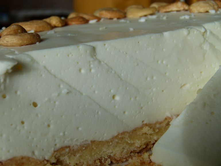 рецепт из интернета, был выписан без добавления алкоголя, поэтому если что, можно поискать первоисточник.для меня большую ценность представляет само суфле, в следующий раз буду делать его с бисквитом, но все же .... нижний корж 50 гр кокосовой стружки, 100 гр масло сливочное, 100 гр муки и 50 гр сахар = все перемешать и в духовку 200 градусов на 15 мин. я делала сразу в кольце.