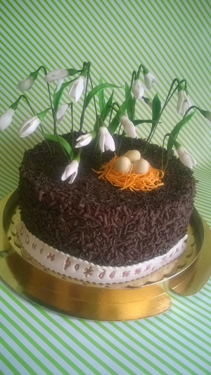 Вот такой образовался тортик на ДР , без мастики с ландышами))