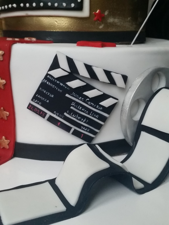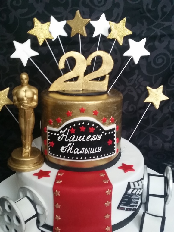 хороший торт,единственное, я может бы поменяла местами одну из катушек и фигурку Оскара,он просто сливается с верхним ярусом