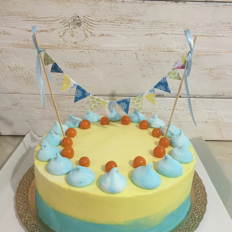 Симпотичный тортик. Подскажи пожалуйста ты сама делала растяжечку из флажков или такая продается?