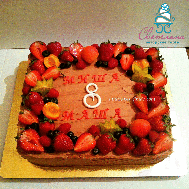Украшение тортов кремом,шоколадом, фруктамиИдея не нова)) 4,5 кг красного бархата с клубникой.