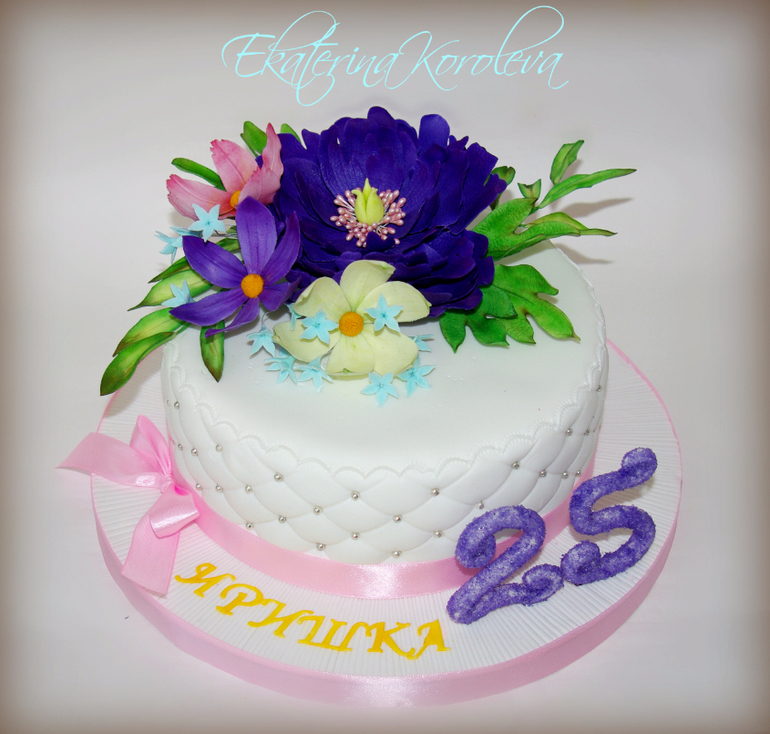 Торты для женщиннаверно несуществующего цвета)) и какие-то еще выдуманные цветы)) наполеон, 3,9 кг Пыталась вернуть цвет в редакторе, но не очень получилось, здесь немного с синим оттенком, в жизни же прям фиолетовый фиолетовый был...