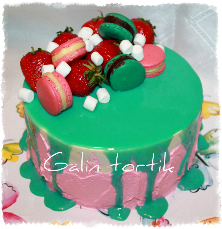 Торт делался для домашнего употребления..Задача была опробовать сам рецепт (получится или нет), посмотреть как она вообще выглядит и как себя ведет на ровной и неровной поверхности (как растекается), понять вообще как с этой глазурью работать!!! Я безусловно знаю, что глазурь такого рода используют на тортах суфле или идеально выровненных, у меня же цель была немного другая!