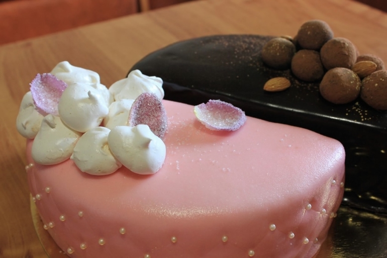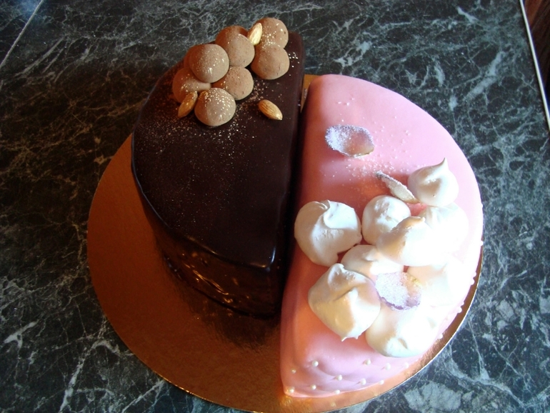 Спасибо) Знаете, Елена, в этом двойном торте нужно было соблюсти одинаковую высоту тортиков, а они с разной начинкой, в общем, розовый оказался пониже, и я решила хотя бы с помощью мастики несколько мм добавить. А еще эти фото сделаны после 3-часовой поездки, торт ехал в другой город. дело было в апреле, было уже жарко. За мусс очень переживала. Может поэтому они мягкие