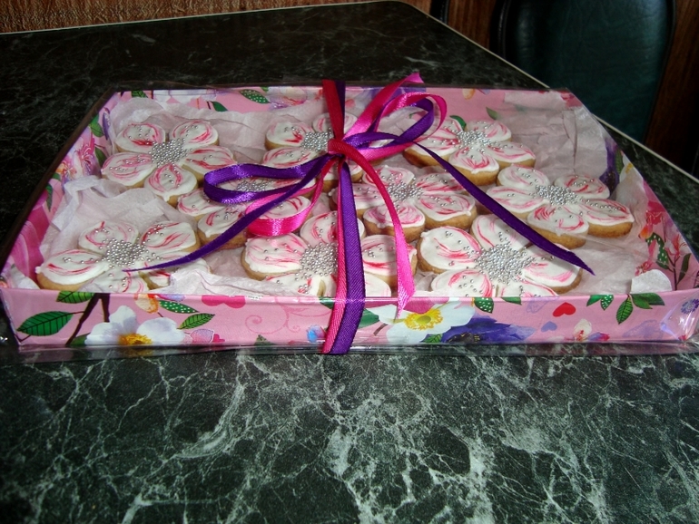 Ой,нет такие нельзя на заказ(только не обижайтесь).Бугры,контуры надо насадкой меньшего размера делать(это я про бант и закарючки на сердцах),есть пряники совсем тонкие.Заливку жиже,потом немного постучать по ровной поверхности.А вот на цветы айсинг надо еще гуще,у Вас цветы размазанные получаются.
