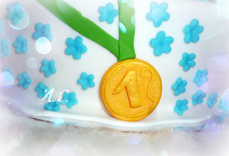 Так как была не корректная и мало понятная для ребенка ситуация на соревнованиях (сначала объявили одно место, а на церемении награждения сдвинули вниз, отдав первенство девочке, прибывшей из зоны конфликта в соседнем государстве), то сделала ей медаль с первым местом! Потому как ребенок его и заслужил и не очень педагогично попал в зону, казалось бы, далекую от детского спорта.