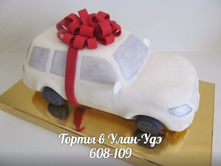 внутри ванильный с смет-творожным кремом, пломбиром, бананами и персиком (машинка), вес 3,7. Подарен женщине, мечтающей о черном Лексусе.
