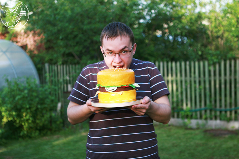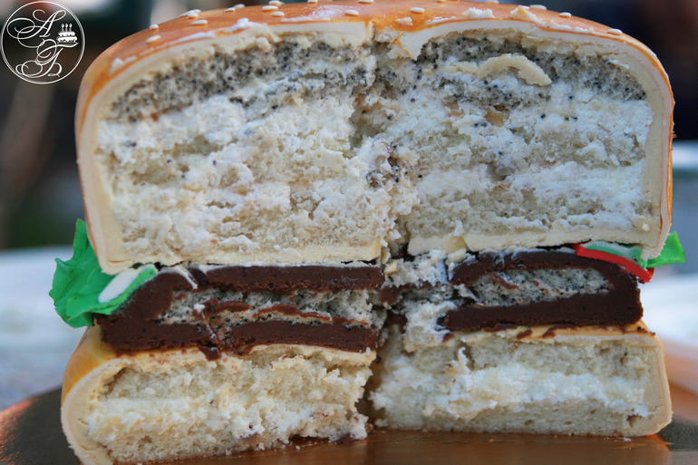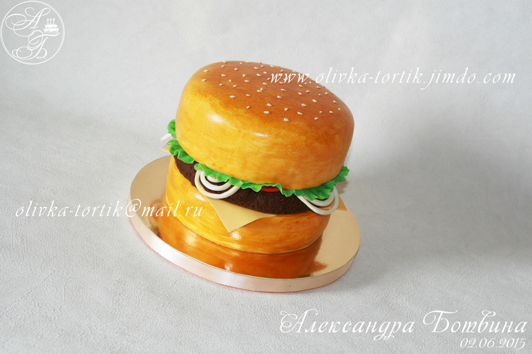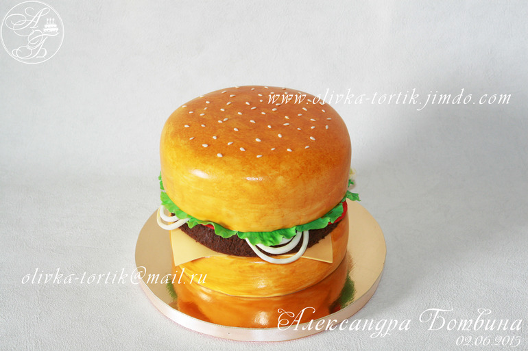 Какой классный! Буквально на днях искала инфу о том как собирать торт-гамбургер и толком не нашла... Ваш разрезик очень кстати!А шпажкой укрепляли?