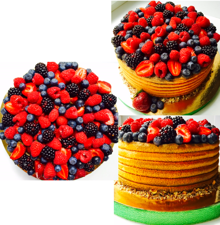 Торт с ягодами. Шоколадные бисквиты, крем: Маскарпоне, сливки, вишня. Вес 3 кг.