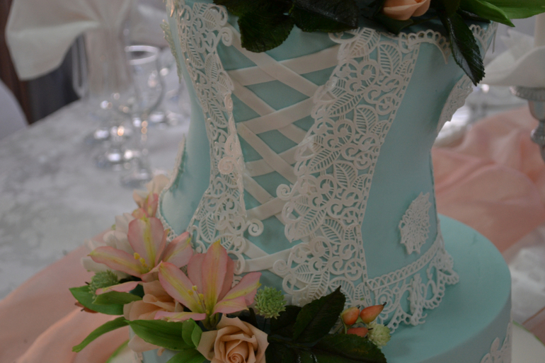 Красиво нереально, такая аккуратность и стиль. Только жаль, что такие торты делаются на болванках( насколько я знаю), мне кажется с готовыми заготовками будет сложнее воплотить такой дизайн, особенно с корсетом. Но все равно браво!