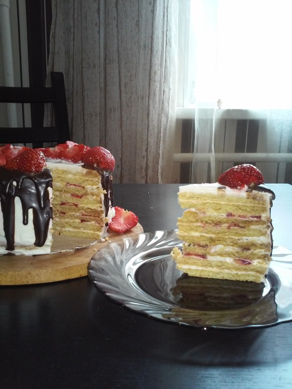 Проба пераРецепт тортика от Алены. Безумно вкусный торт, спасибо автору за рецепт! Но я положила мало крема между коржами, и поэтому разрез не очень то уж, но на вкус очень даже))))) в следующий раз положу крема побольше. Ну и фото прикладывается)