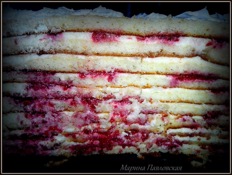Разрезы супер!!! А у меня почему то в тортиках с беленькими коржами+ вишня разводы получаются серо зелёные от вишни-нужно попробовать с малиной что у меня выйдет! Марин-не поделишься рецептом глазури оранжевой?
